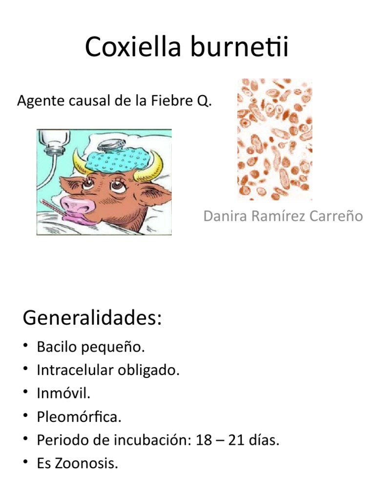 Burnetii bacteria are found in the birth products (i.e. Algunos de los signos y síntomas son: La fiebre q es una zoonosis de distribución universal producida por coxiella burnetii. La rabia, la tuberculosis o el carbunco ( ántrax) son algunas de las más conocidas. Para las infecciones agudas, el tratamiento con antibióticos dura de dos a tres semanas.